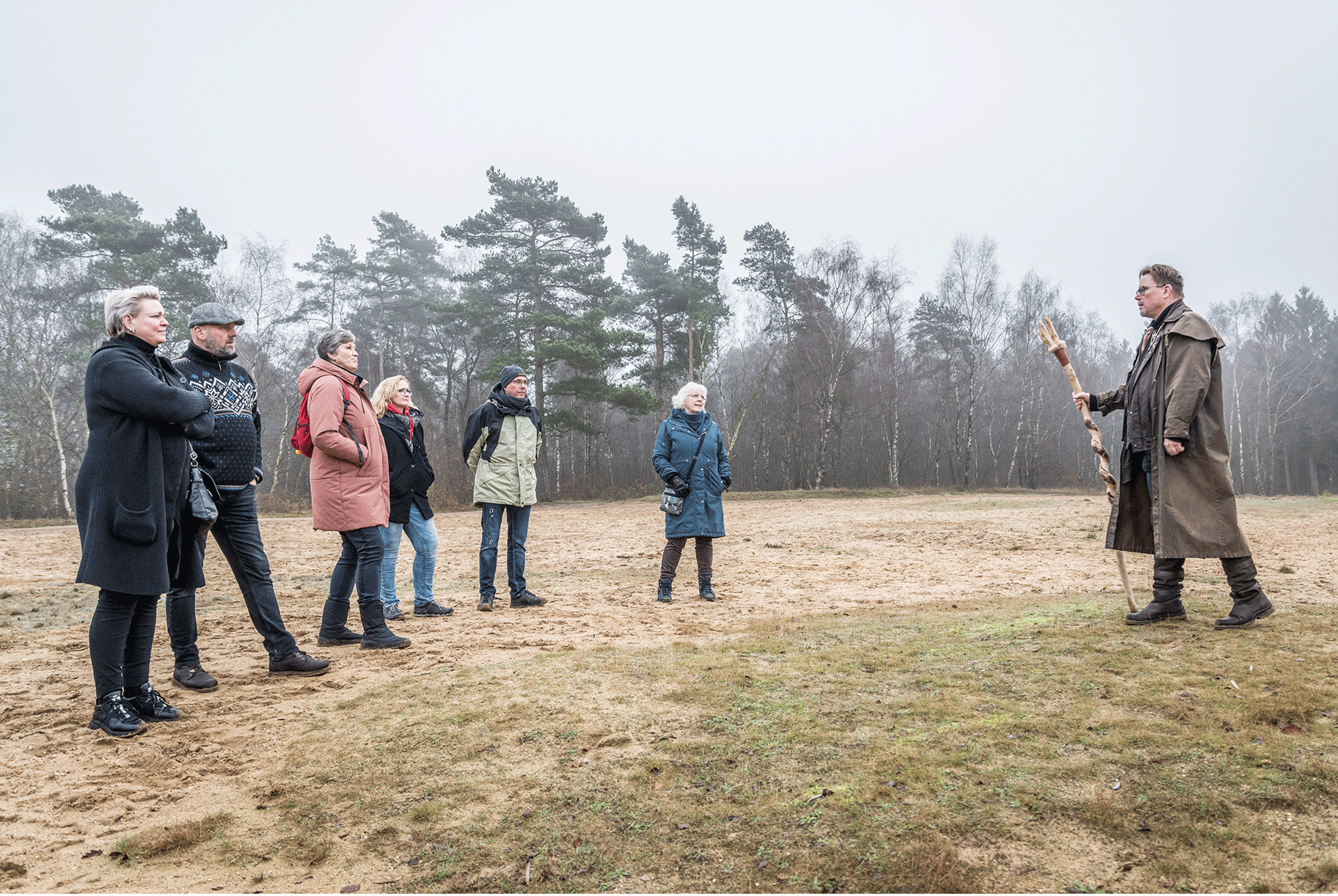 Een bijna magische wandeling  vanaf de openbare parkeerplaats naast dorpshuis de Wardborg aan de rand van het Veluwse Garderen. Na ontvangst met koffie, thee, warme chocolademelk en een smakelijke plak Veluwse herfstcake maken we ons op voor een wandeling van ca. 3,5 km en een duur van ongeveer 2 uur. Tussendoor wordt gestopt op diverse plekken waarbij in deze tijd oeroude sagen, legenden en vermakelijke volksverhalen worden verteld. Verhalen die o.a. raken aan de kerst en oud en nieuwtijd. Na afloop van de wandeling met prachtige bos, heide en landschap vergezichten komen we terug op de parkeerplaats waar we nog gezellig napraten meteen hartige versnapering, een Veluws Zwienenbitter en andere versnaperingen.